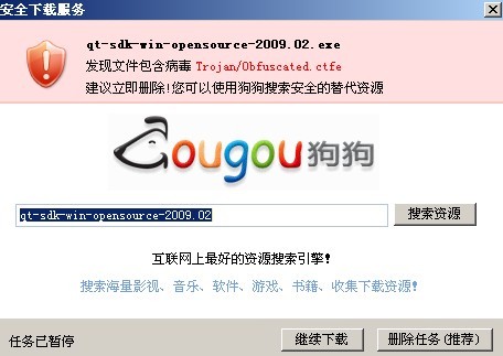 这个为QT官方网站www.qtsoftware.com提供,不会有毒,不过只是江民提示有毒,其他杀软均未提示,如图: