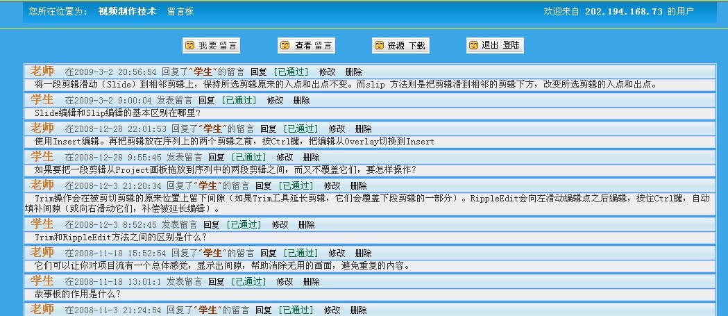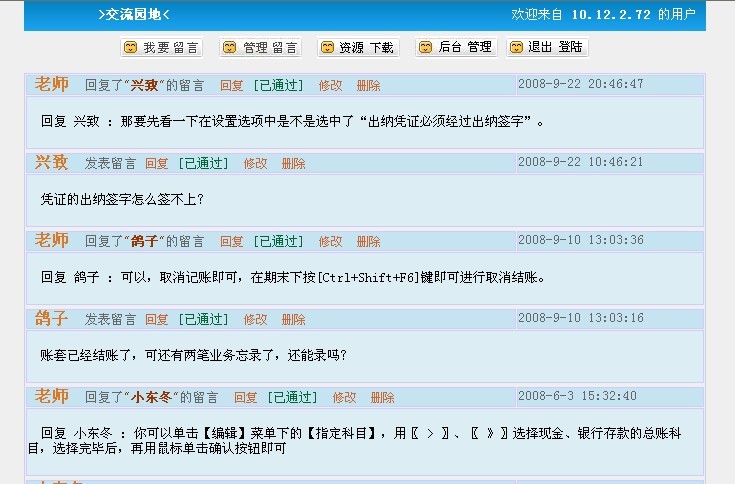 前些天系主任的助理让我再重新做做学院精品课程的留言板,终于在昨天和今天上午的努力下升级了一下自己写的留言板。原来写的留言板就有下面几个文件: