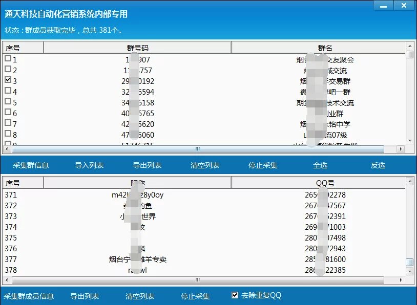 然后一一添加,加进群之后,用QQ群成员批量导出软件,将群成员QQ数据导出,如下图所示: